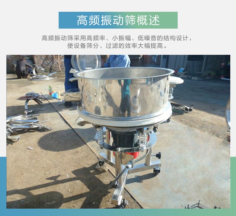 高頻篩也叫高頻振動(dòng)篩,采用高頻率、小振幅、低噪音的結(jié)構(gòu)設(shè)計(jì),使細(xì)粒物料在篩面上高速振蕩,破壞了漿液的表面張力,增加了物料與篩孔接觸的頻率,使設(shè)備篩分、過濾的效率大幅提高,廣泛應(yīng)用于食品、醫(yī)藥、化工、磨料、陶瓷、礦業(yè)、顏料、冶金、地質(zhì)、國防、電子等行業(yè)的漿料、粉料、顆粒生產(chǎn)的分級(jí)、過濾。方便的活動(dòng)車架在工作場(chǎng)所可以隨意移動(dòng),不用進(jìn)行復(fù)雜的設(shè)備安裝,高低可調(diào)、操作簡(jiǎn)單、經(jīng)久耐用。