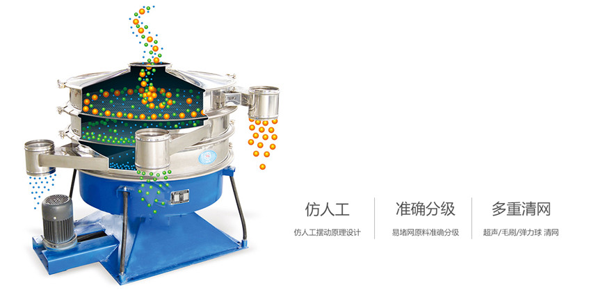 搖擺篩是一種仿人工搖動的低頻旋振篩,其原理是:瞬時運動為沿徑向的位移和以此位移為軸的圓周運動的合成(螺旋運動),即可調(diào)節(jié)偏心距的激振器產(chǎn)生了非線性三維運動,物料也產(chǎn)生同樣的近似手動作業(yè)的運動,從而達到篩分之目的,再配合篩分附件可獲得更加理想的篩分效果,適合于圓形狀、圓柱狀、片狀、乃至 于規(guī)則形狀易堵網(wǎng)且需要精細篩分的物料,是為了滿足大產(chǎn)量、高密度篩分用戶而設(shè)計的一種篩分設(shè)備,與一般圓形篩相比,它的篩分精度、效率、產(chǎn)量、篩網(wǎng)壽命能提高5-10倍,符合所有精細與超細范圍的粉末與微粒狀物料,特別適合難以處理的物料。還可單層或多層篩分,一次可篩分至6個粒度。搖擺篩適合精細和超細范圍的粉末和微粒狀物料,產(chǎn)量大、精度高