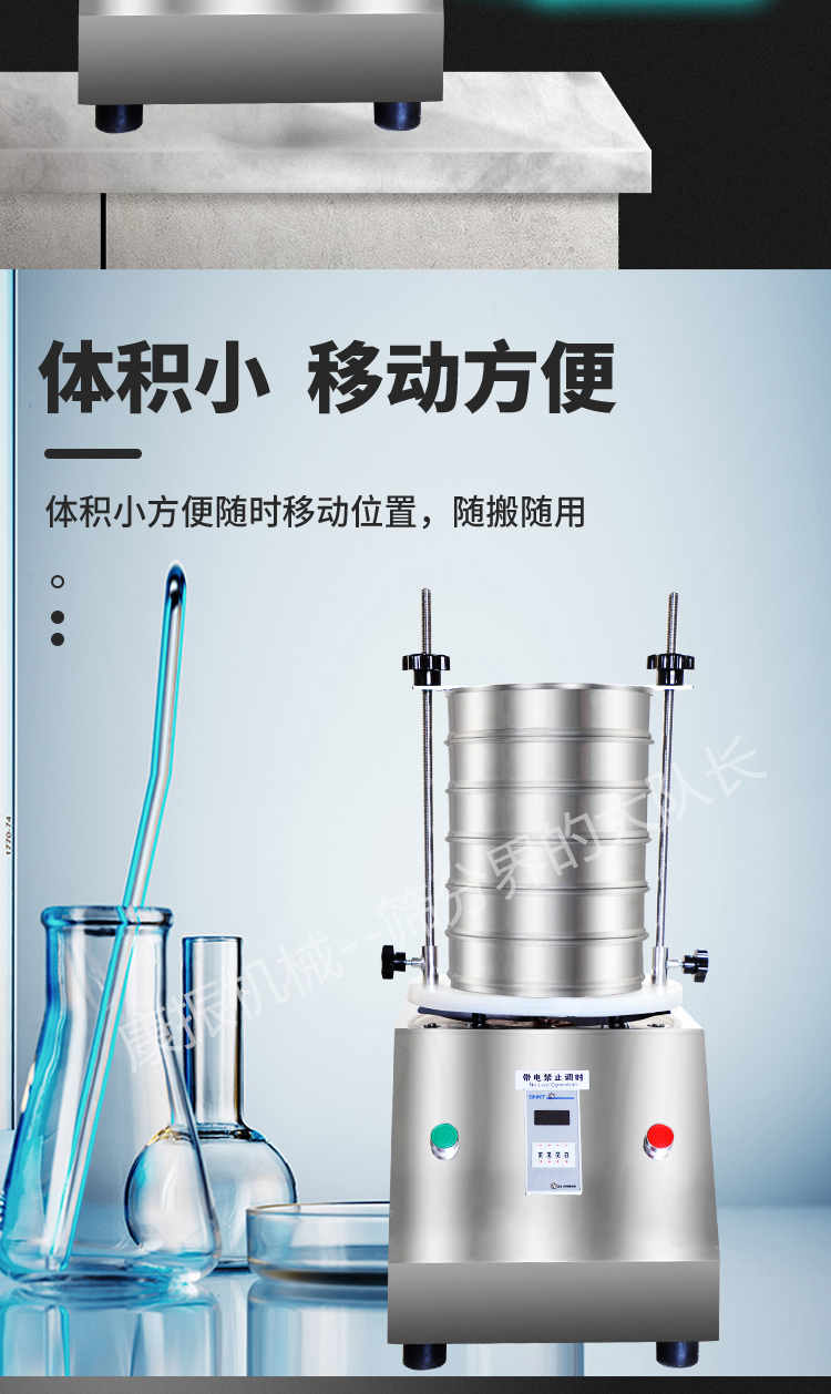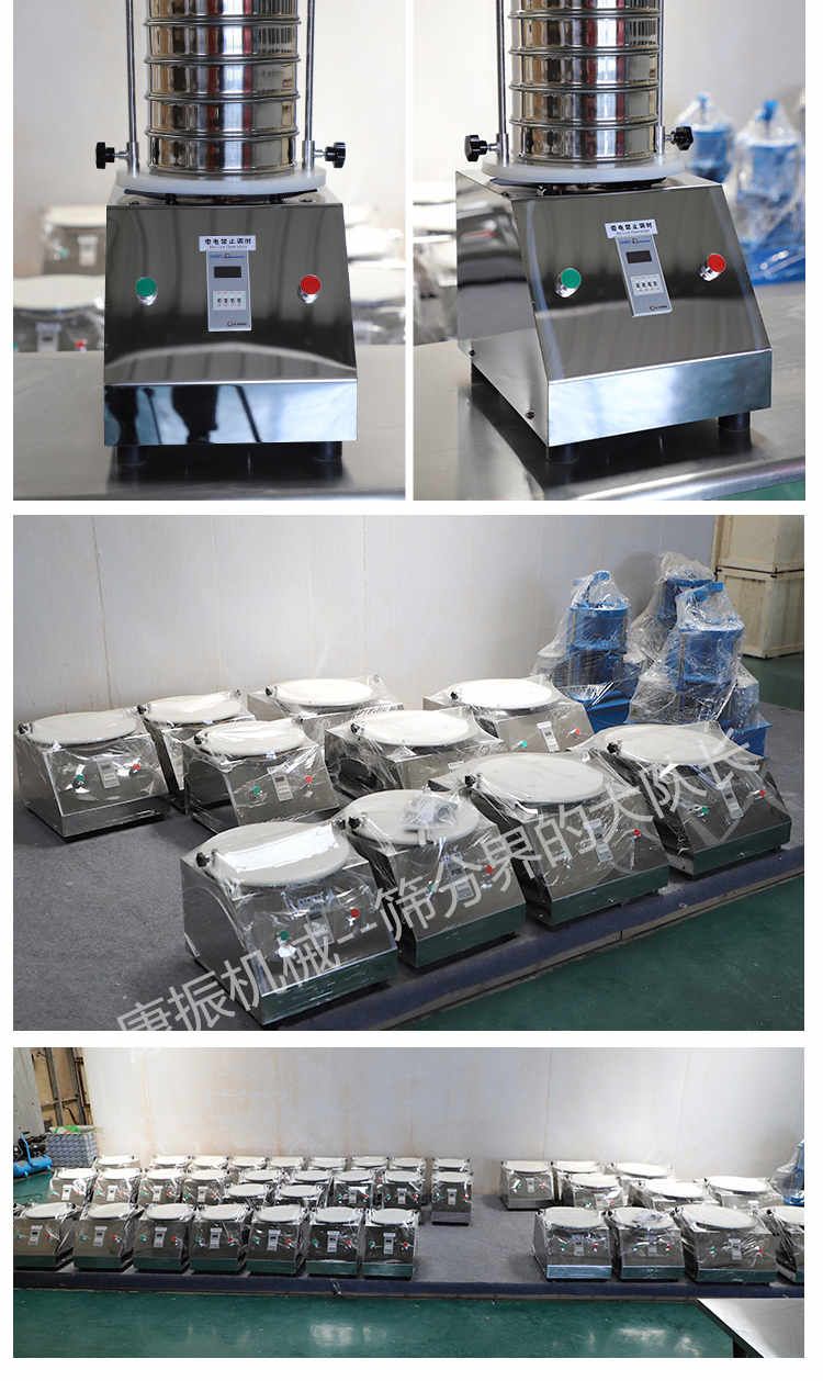 “機(jī)械篩分”將篩子按孔徑大小疊在一起,給料放在頂上一層篩子上,并加上蓋和底盤,一般疊56個(gè)篩子。然后放在機(jī)械振篩器上進(jìn)行機(jī)械振動(dòng)篩分。通常,振動(dòng)時(shí)間為20分鐘。檢測(cè)篩分質(zhì)量時(shí),再用振篩器振篩器振篩5分鐘,如每分鐘篩下量小于0.2%試驗(yàn)樣量即為合格,對(duì)于粗粒物料,過篩率小于1%即可。如篩分過程中損失量超過總篩分量的0.5%時(shí),試驗(yàn)必須重新取樣進(jìn)行。為避免損失和延長(zhǎng)篩分時(shí)間,有時(shí)在開始篩分時(shí)先用細(xì)的篩子將粉塵篩除