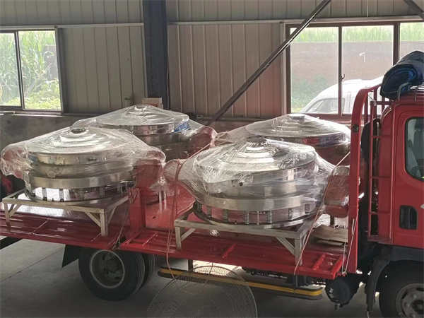 4臺1200不銹鋼直排篩發(fā)貨, 加裝超聲波系統(tǒng),篩分精度高,產(chǎn)量大, 能耗低,全封閉,無粉塵,特制電機。